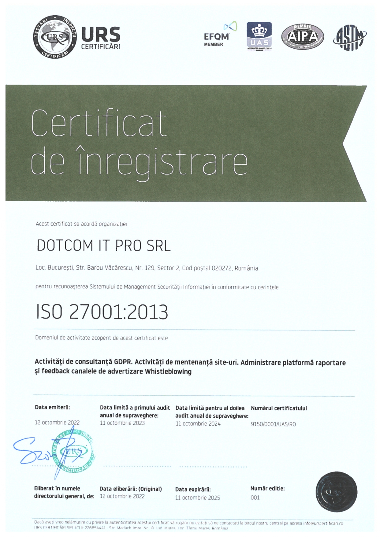 Respectam cerintele GDPR si Directiva Whistleblowing